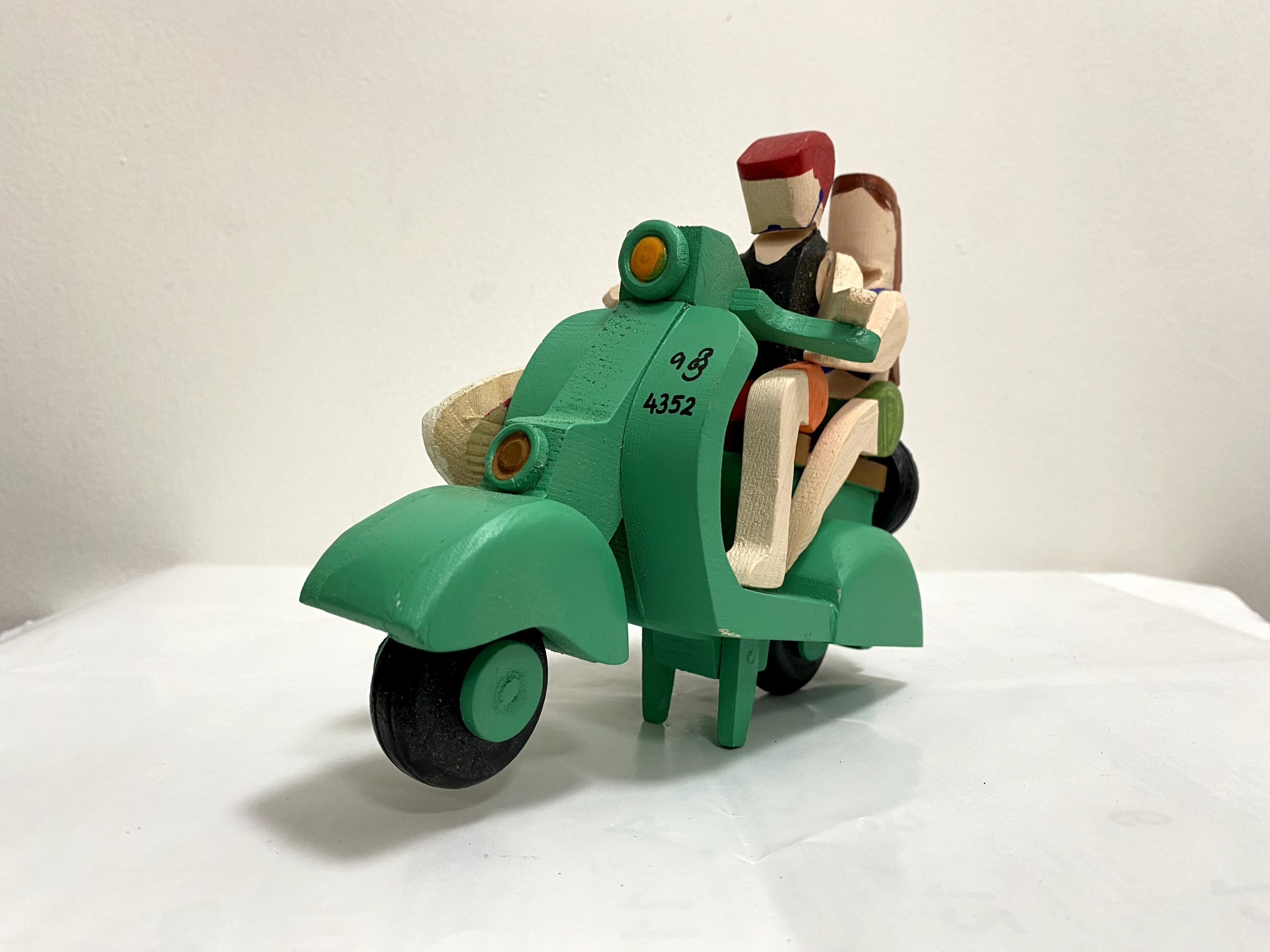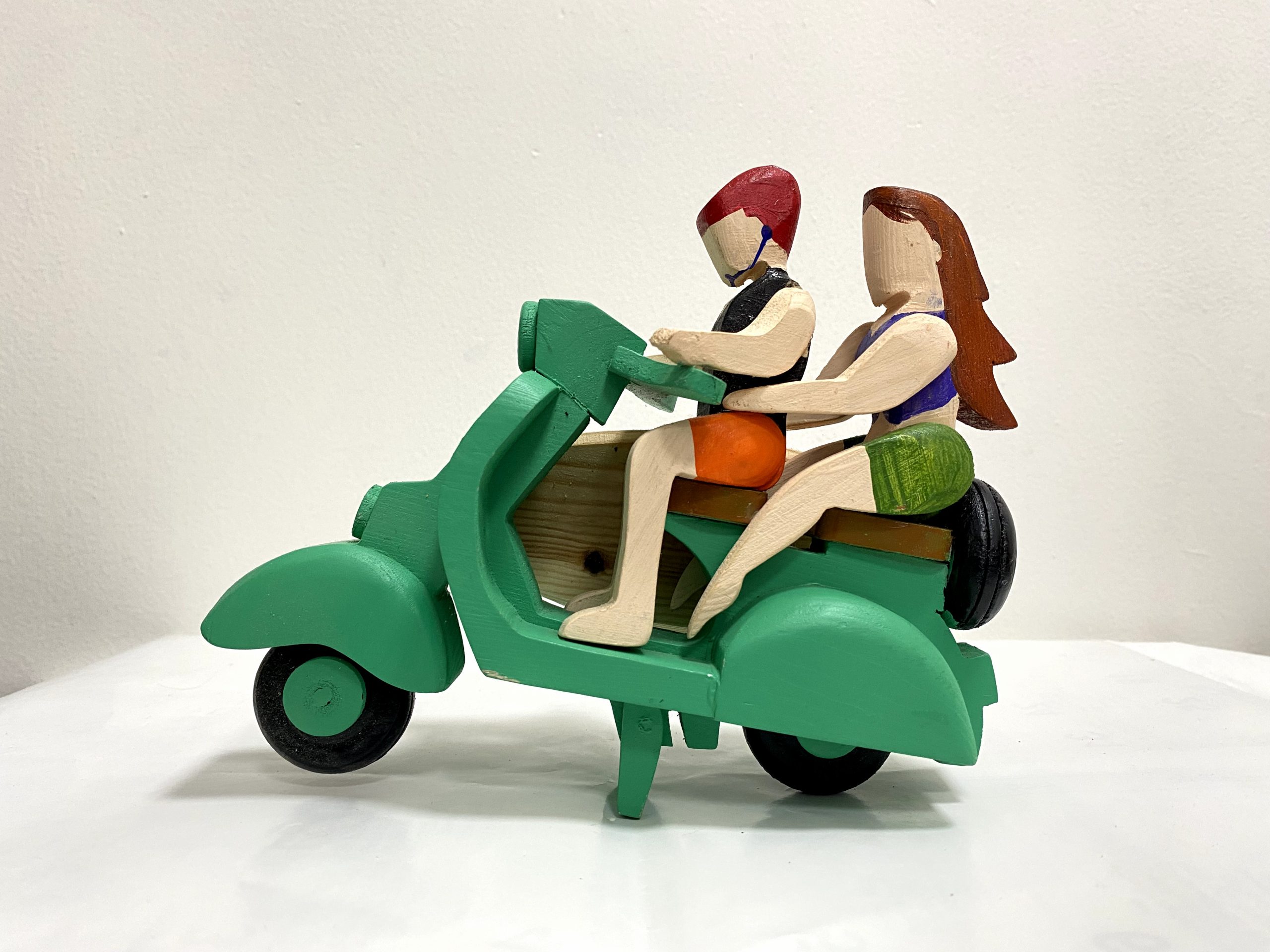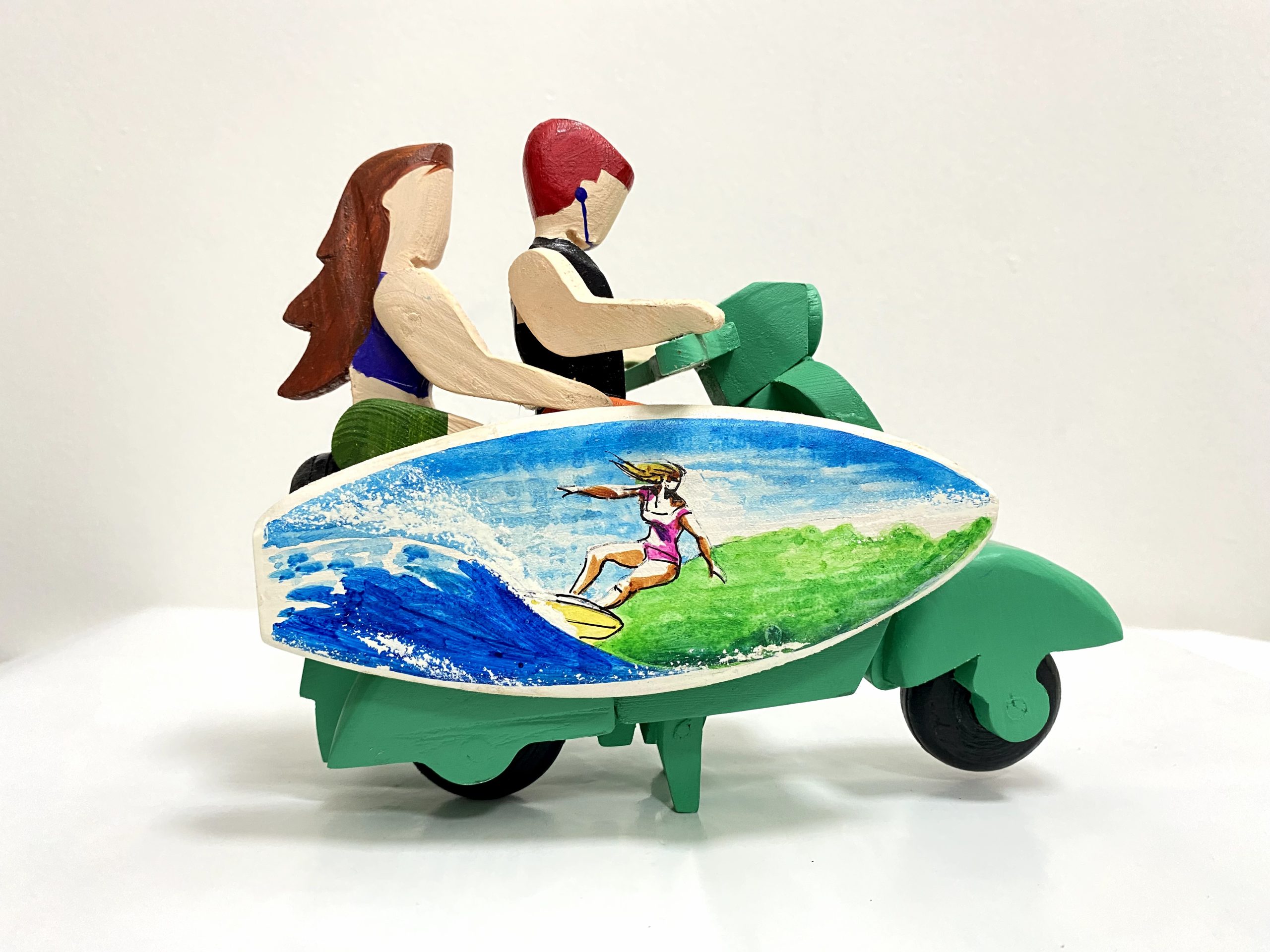 Scooter with couple- Non colourScooter with couple & Art surfboard – Hand painted Green