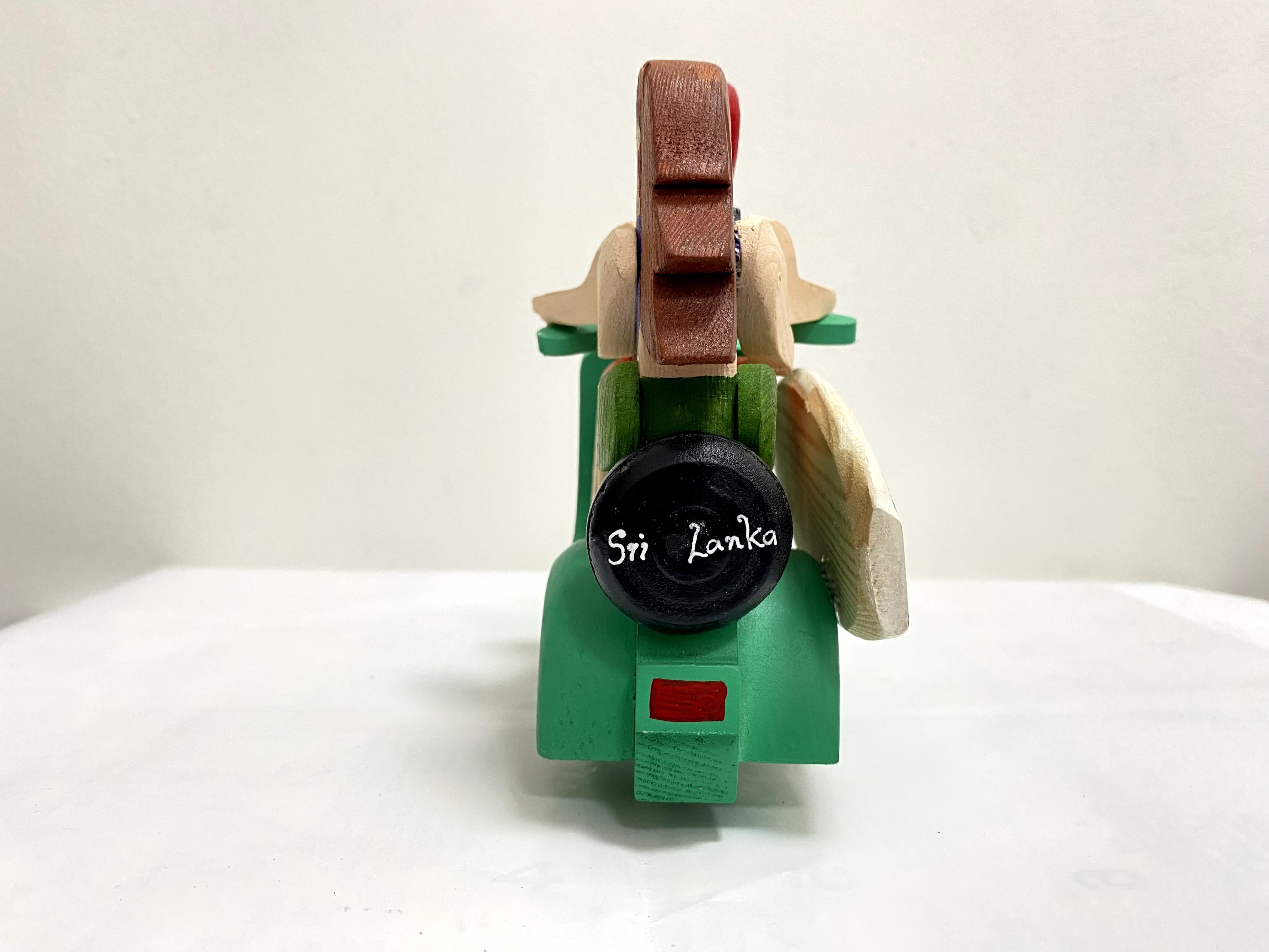 A vibrant duo that captures the essence of island adventure. This hand-carved set features a classic wooden scooter with a charming couple, paired with a matching hand-painted red surfboard. Decorated with intricate traditional motifs and bold tropical colors, this set is a perfect tribute to coastal life and makes an eye-catching addition to any shelf or desk.